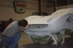 The Lamborghini Miura is really starting to look good as it settles into its second coat of primer. Once my projects get into primer I really start seeing the deep beauty of the design of the car and I get excited to see it in color. What a gorgeous design this Miura has… judge for yourself! Alberto, the owner, came down to take a look. It’s always great to do projects with hands-on owners.